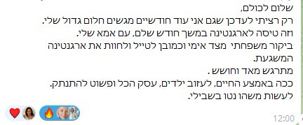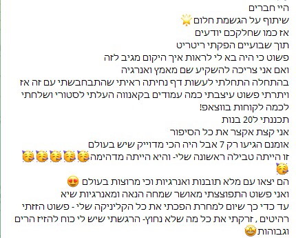 התרגילים השבועיים בטלגרם הם פשוט מדהימים. קצרים, ממוקדים ועובדים. חובה.